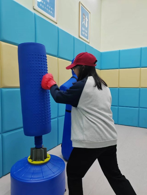 活动现场,同学们在体验各种心理健康互动游戏。其中,有极限滑雪、切西瓜等虚拟现实(VR)游戏,还有解压宣泄室中的拳击手套、海绵垫等道具,以及墙面上的DIY手工制作区。这些活动不仅让同学们在轻松愉快的氛围中释放压力,还培养了他们的动手能力和创造力。