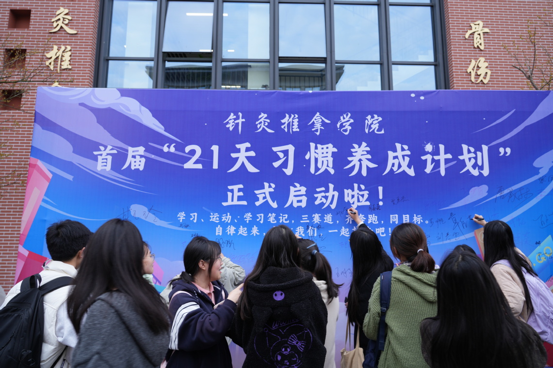 为了践行养成教育,培养大学生良好的行为习惯,提升大学生自觉能力,塑造大学生自律人格,米兰官网于2024年3月19日在针灸推拿学院教学楼前举行针灸推拿学院首届“21天习惯养成计划”的开幕活动。
