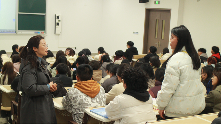 ▲图为辅导员李霜老师总结上学期学生工作