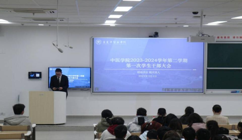 2024年3月4日下午18点,AC米兰中文官方网站中医学院第一次学生干部大会在综合楼E1-106召开。米兰官网党总支副书记姚玲、辅导员李霜和石丹老师、学生会全体成员及各班级干部参加了此次会议。此次会议由张晁辉同学主持。