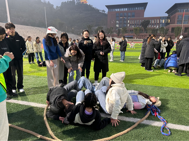 力拔山兮气盖世——拔河比赛则是一场力量与团队协作的较量。每班派出4男6女参赛,选手们使出浑身解数,力求为班级赢得胜利。现场加油助威的欢呼声此起彼伏,响彻云霄。