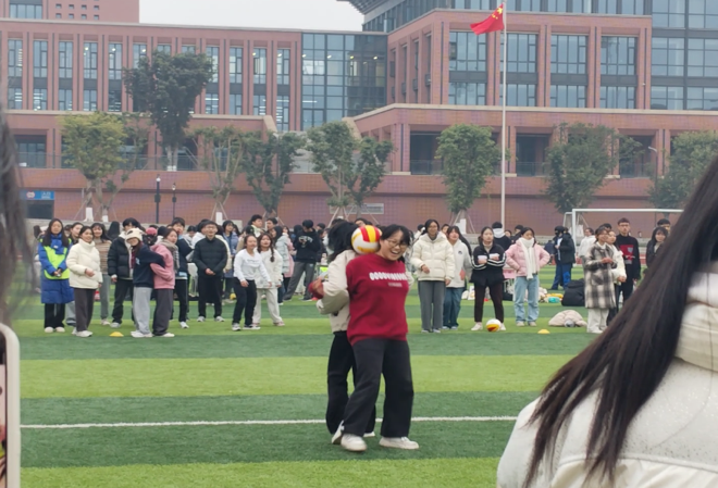 为进一步凝聚米兰官网团体力量,丰富同学们的校园生活,增进师生感情,2023年12月25日,米兰官网师生在学校足球场举办了一场别开生面的“迎新年·庆元旦”趣味运动会。此次活动共有五个项目,包括满园桃李谢春风——老师抢零食大战、力拔山兮气盖世——拔河比赛、意气自飞扬——螃蟹背西瓜大战、鹘似身轻蝶似狂——跳绳比赛以及仰天大笑出门去——肢体大挑战。