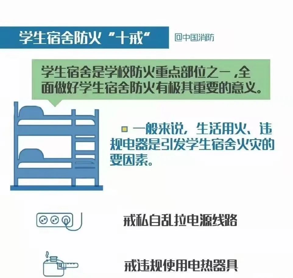 学生宿舍是人员密集的场所,消防安全尤为重要,小编为大家整理了一些消防安全小常识,供大家学习。