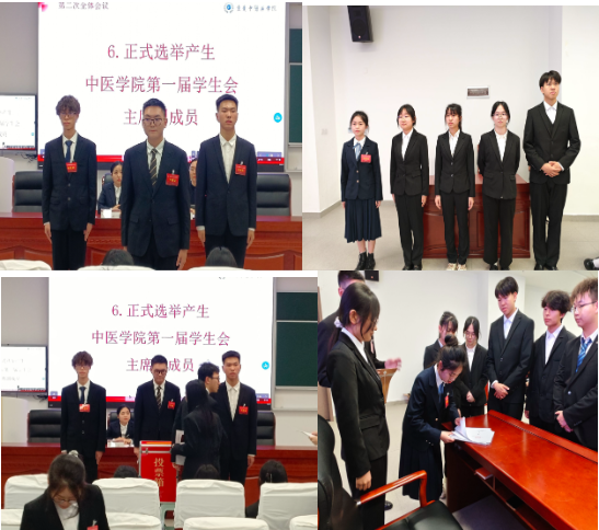 李景阔和陆宇同学分别对本次当选中医学院学生会主席团成员进行感谢,他们表示感谢领导及同学们的信任,将全力以赴,肩负学生会主席团的重任,引领同学们共同进步,与同学们一起为更加美好的大学生活而不懈拼搏,为打造一个更团结高效的中医学院而努力奋斗。