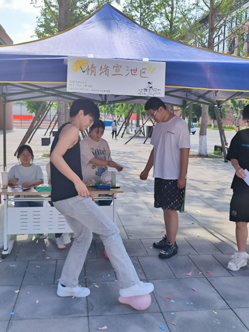 随后,情绪宣泄区也吸引了众多同学的驻足。他们纷纷在色彩斑斓的气球上写下自己的烦恼与心事,然后通过挤压、踩踏等方式将气球爆破,象征着将那些消极情绪彻底释放。这一环节让同学们在轻松愉快的氛围中释放了内心的压抑,重新找回活力与希望。
