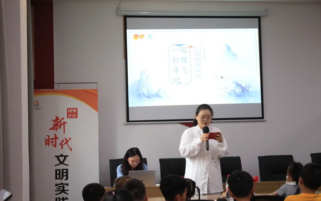 结合主持人幽默风趣的讲解和PPT上可爱的动图,志愿者和小朋友们一起打了健身气功——八段锦,激发了他们对健身气功的兴趣,加强了他们对中医文化的认识。让大家在学习、工作之余也能通过打八段锦强身健体。