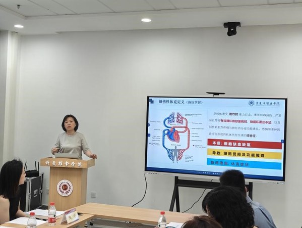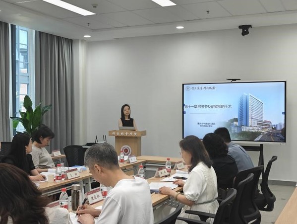随后,试讲环节正式开始。重庆市中医骨科医院急诊/重症医学科主任医师彭晓玉和创伤骨科医生陶宇分别进行了试讲。彭晓玉主任医师试讲课程为《创伤急救学》,深入讲解创伤性休克及多器官功能衰竭相关知识;而陶宇医师则围绕课程《骨伤科手术学》,详细介绍了肘关节及前臂部手术相关知识。