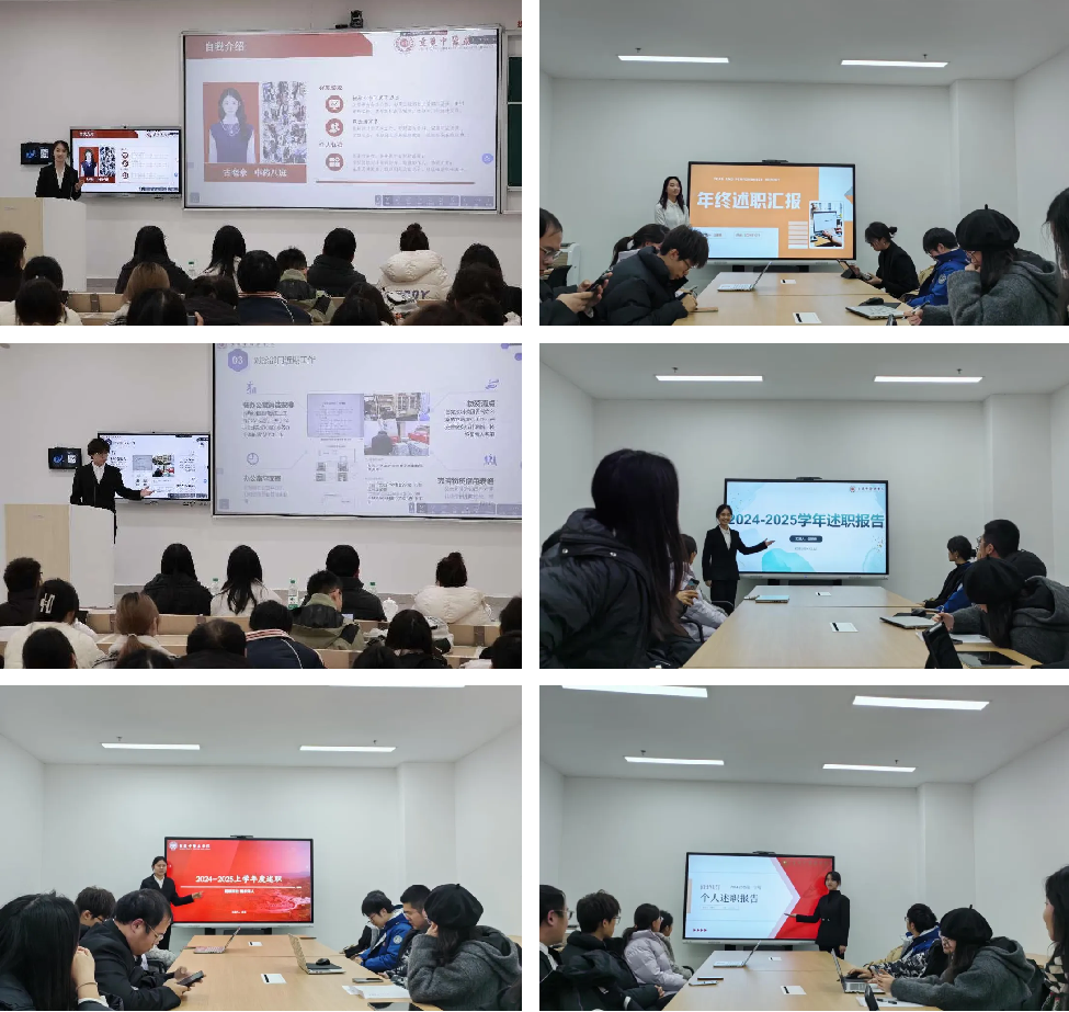 校学生会主席团、部长团进行本学期工作述职。各成员从思想建设、政治素养、组织认识、工作总结、部门合作等方面进行述职,认真总结各学生会本学期以来的工作开展情况和取得的成果,深度剖析存在的问题和不足,并提出应对措施和未来工作规划,希望在未来继续砥砺前行,切实维护好同学们的利益。