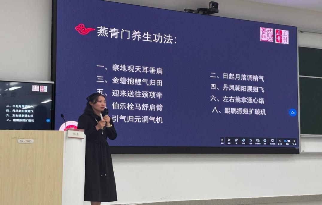 针对以上问题,陈教授及其团队原创了燕青门养生功法并由李娇娇老师现场传授,此功法实现了足不出户就能从头到脚肌骨伸展,改善体态,缓解躯体压力。