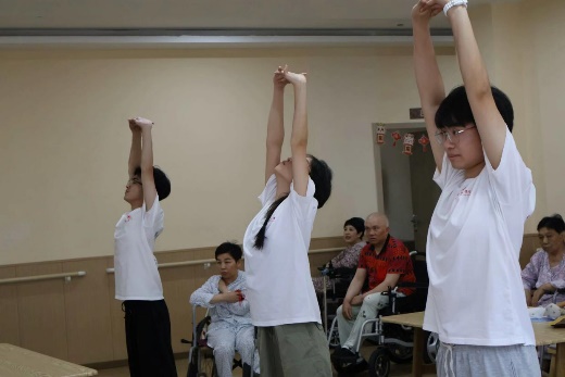 为了帮助老人们强身健体,药律先锋队的队员们现场展示了八段锦。他们动作流畅、姿态优美,老人们也跟着模仿学习,一招一式都传递着健康与活力。