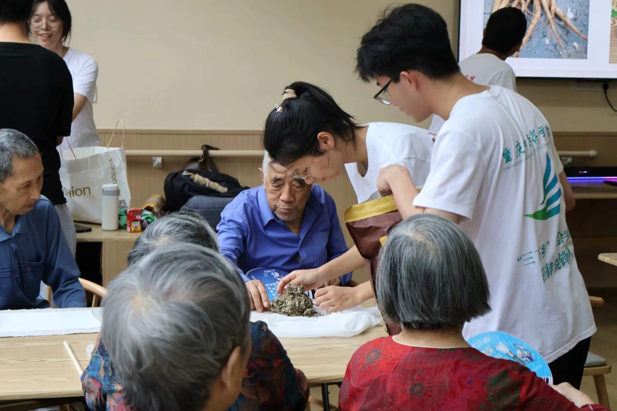 队员们还为老人们准备了精心制作的中药香囊,香囊中散发着中药材的独特香气,承载着队员们对老人们的健康祝福。老人们接过香囊,脸上洋溢着幸福的笑容。