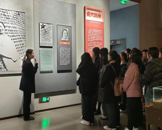 在讲解员的带领下,师生们进入纪念馆内,馆内陈列的大量史料、照片和实物,都在诉说着那段波澜壮阔的历史,同学们不时驻足,认真了解照片和实物背后的故事。讲解员详细讲述了张露萍烈士、王朴烈士、江竹筠烈士的英勇事迹,挺进报事件以及“小萝卜头”宋振中在狱中求学、传递密信的事迹等。聆听之中,同学们深刻体会到烈士们坚如磐石的理想信念、和衷共济的爱国情怀和不折不挠的凛然斗志。