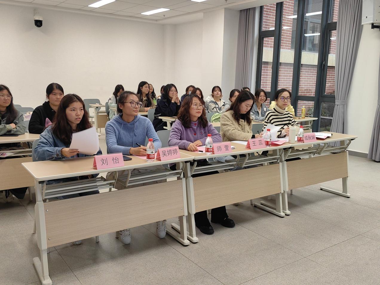 为提高学生对寝室的认同感与归属感,营造好良宿舍氛围。米兰官网于2024年11月13日下午举行了首届“寓”见通识,“宿”说美好文化活动——寝室建设规划大赛。出席本次比赛的嘉宾有通识学院副院长师萱,通识学院办公室副主任王蕊、健康服务与管理专业负责人吴婷婷、健康服务与管理专业班主任成秋娴以及辅导员刘怡。随着诸位评委陆续入座,在主持人宣布下,比赛正式拉开了帷幕。