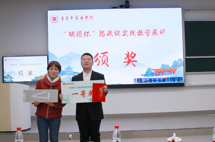 为深入贯彻习近平总书记对学校思政课建设作出的重要指示精神,推动思政课程内涵式发展,12月11日下午,教务处、马克思主义学院在综合教学楼E1-104举办2024-2025学年第一学期“明德杯”思政课实践教学成果展示评比活动。本次活动以“承中医文化 做中医传人”为主题,教务处副处长李娟、马克思主义学院院长代浩云、医药导报主编冯华、学生处事务管理科科长杨翰、中医学院杨艳梅教授和百余名师生代表参加。