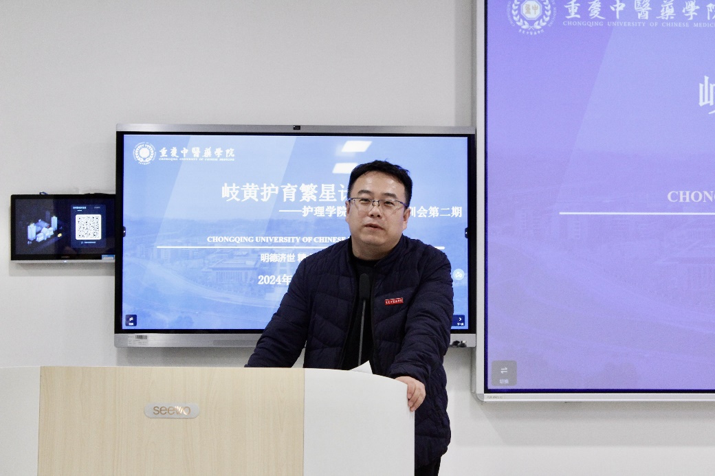 朱峰副院长对本次讲座进行总结发言,他首先对任源钢部长的悉心分享表示感谢。同时指出学生骨干与团队协作对于学科建设和学生综合发展的重要性,并鼓励大家继续保持积极向上的工作态度,未来希望看到护理学院学生干部的不断进步与自我完善。
