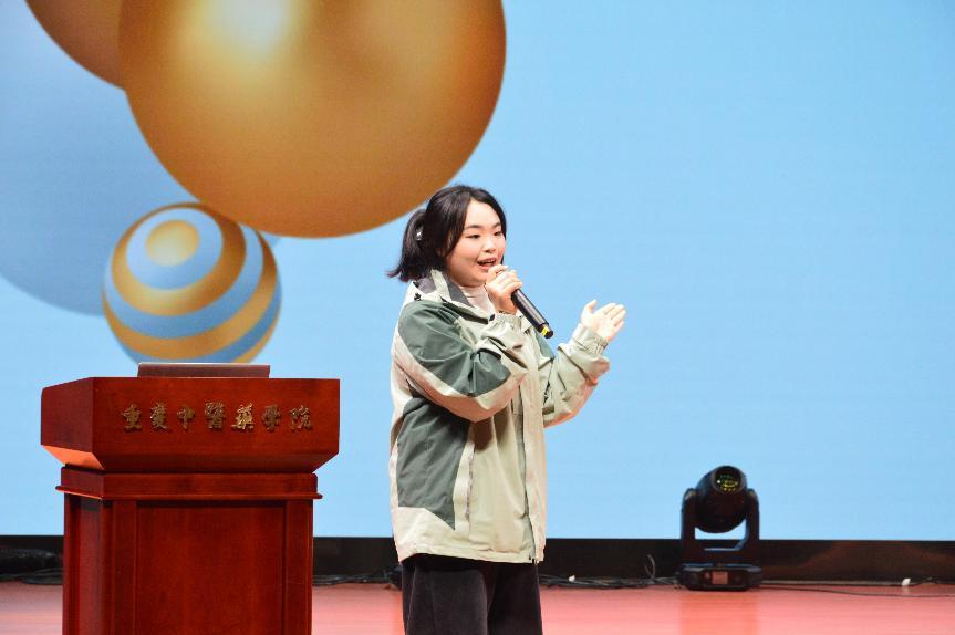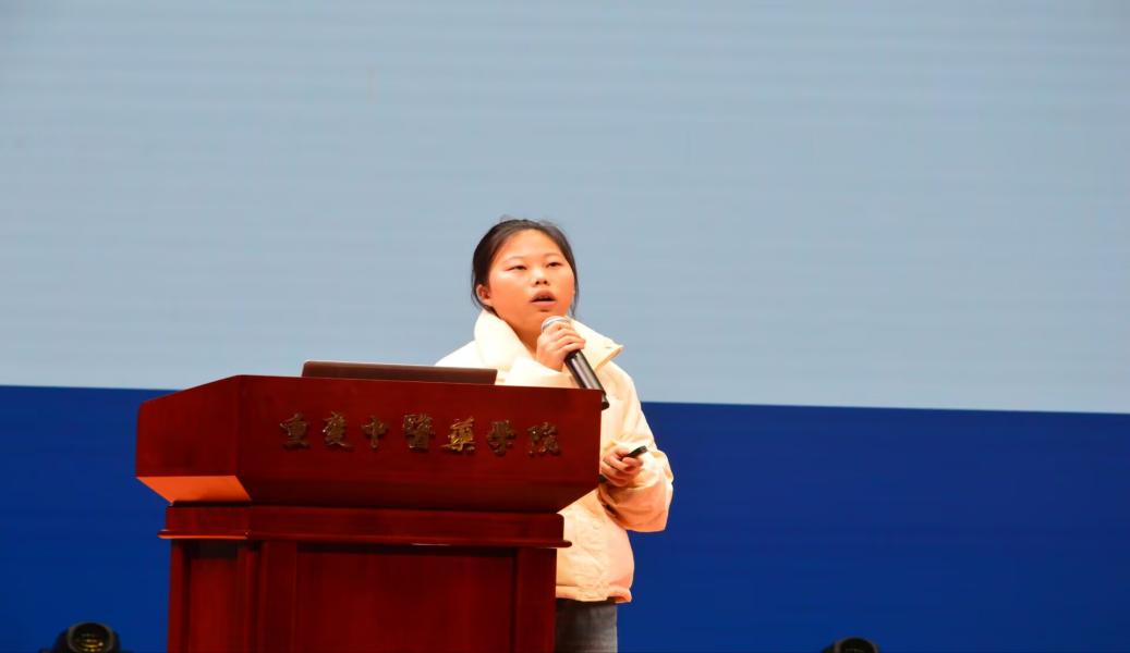 韩汶贝同学以“从甘草到人参——我的六边形本草生长志”为主题,深情地分享了她从基础知识学习到全面发展的成长历程。她以象征着调和诸事的起点——“甘草”和寓意着大补元气的扎根岁月——“人参”为切入点,向同学们展示了如何在学业和生活中寻求平衡,逐步实现自我提升。韩汶贝同学将智慧和激情融入到分享之中,激励着在场的每一位同学。