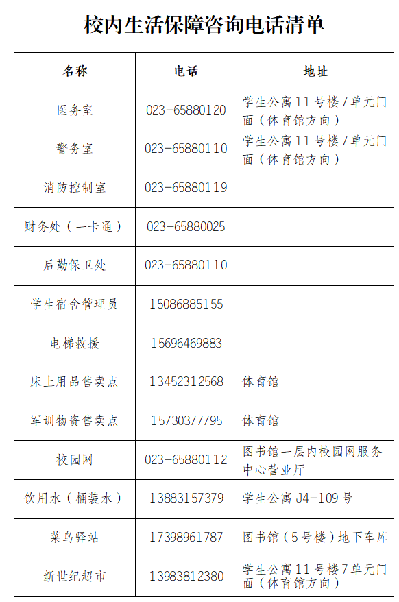 新生入口:学生在1号门(东门)下车,车辆临时停靠,学生步行入校报到