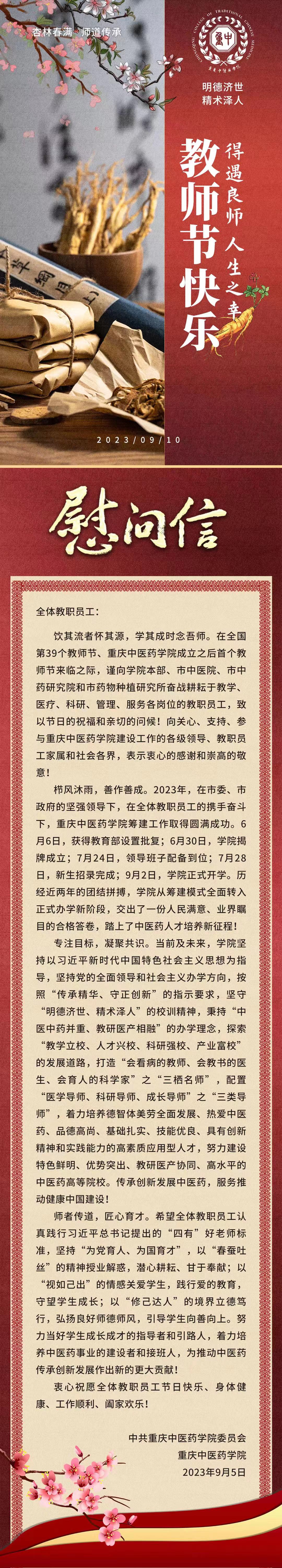 致全校教师和教育工作者的慰问信