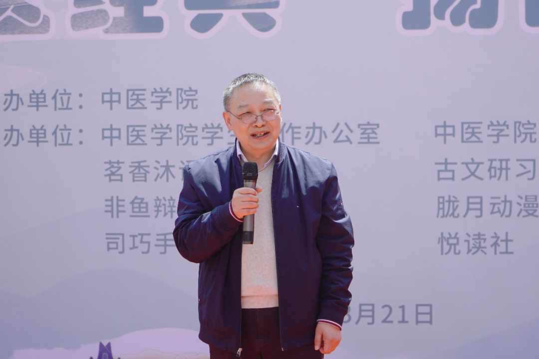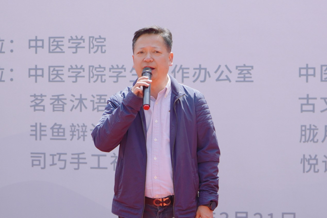 AC米兰中文官方网站党委宣传部部长唐彤东在活动中为同学们送上寄语,他希望大家能够在这里玩得开心、学得有趣,希望同学们积极参与到各项社团活动中,找到自己的兴趣,也成为中医文化的继承者和传承者。