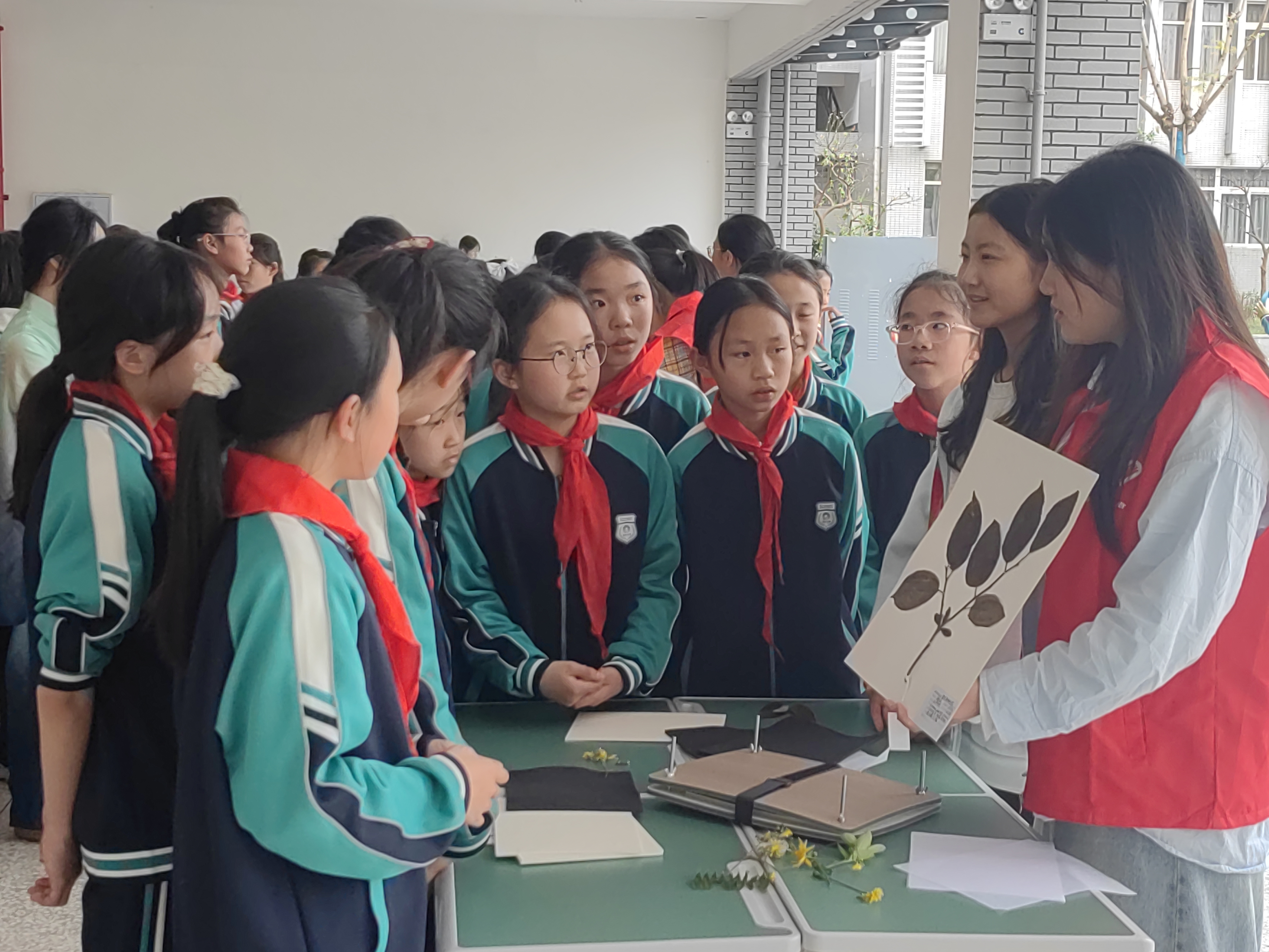 标本制作深受欢迎,听着“小老师”们讲中草药背后的有趣故事,看着“小老师”们亲手制作的一幅幅精美药用植物标本,孩子们赞不绝口,跃跃欲试。在“小老师”们的耐心示范与指导下,孩子们学会了制作标本,将校园采集的中草药定格于方寸之间。