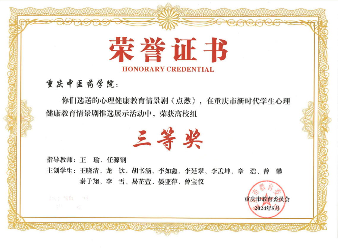 近日,由重庆市教委主办的“以剧育心.启智润心” 重庆市新时代学生心理健康教育情景剧推选展示活动圆满结束。此次情景剧大赛得到市内各大中小学校积极响应,共76件作品参加比拼。经专家组初审和复审,米兰官网选送的参赛作品《点燃》在众多作品中脱颖而出,荣获全市三等奖。