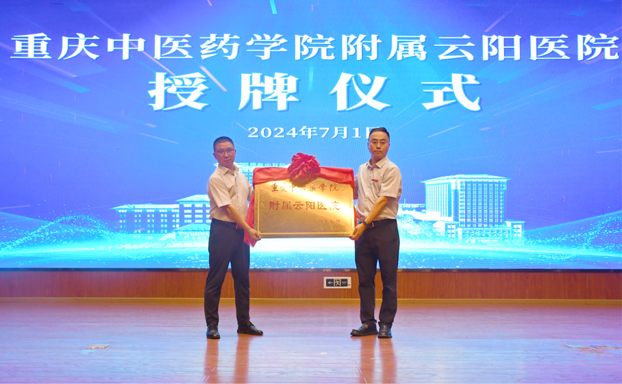唐樵(右)代表学院向云阳县中医院授牌