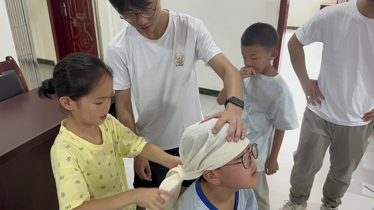 为了增强青少年守护生命安全健康意识,从小树立“人人学急救,急救为人人”的观念,17日下午,实践队在大顺镇社区开展了应急救护知识科普实践活动,重点讲解了海姆立克急救法,止血包扎法等急救知识,并带领带领现场小朋友们一起进行实操练习,让理论之花在实践中绽放。