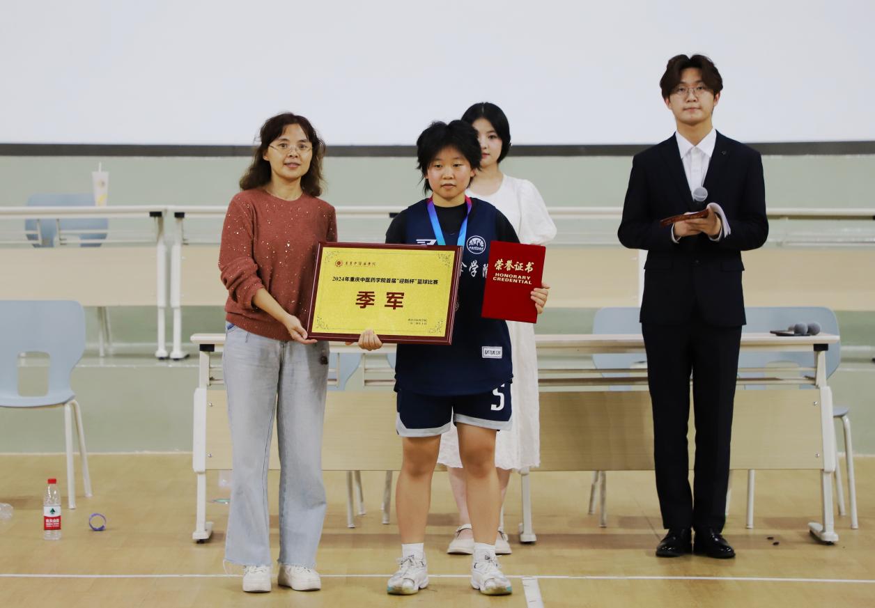 ▲科研处处长朱华李为女子组季军——针灸推拿(骨伤)学院女子篮球队颁奖