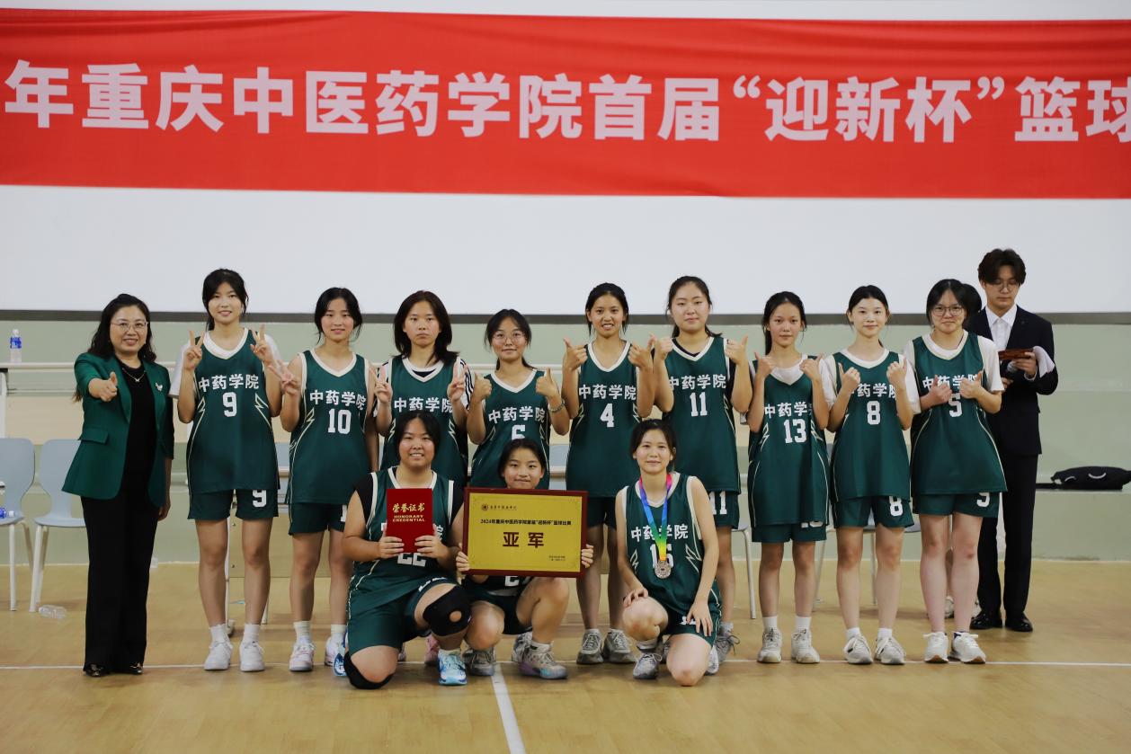 ▲教务处处长宗晓琴为女子组亚军——中药学院女子篮球队颁奖