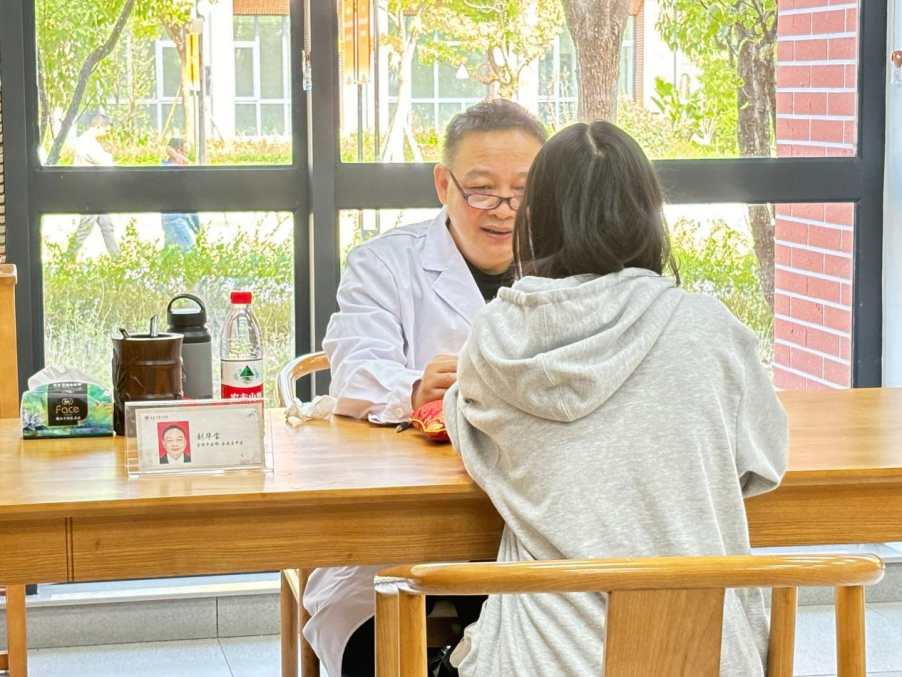 在中医学院国医馆内,中医学院刘华宝院长带领该院老师们积极开展义诊服务,他们运用望闻问切四诊法为同学们细致诊断。诊断时,老师们专注地观察同学们的神色形态、舌苔变化,轻搭脉搏感知脉象密码,耐心倾听同学们的病症描述,做出了准确无误的判断。老师们全程严谨细致,为同学们上了一堂生动的临床实践课,也让同学们更加坚定了成为一名中医医生的信念。