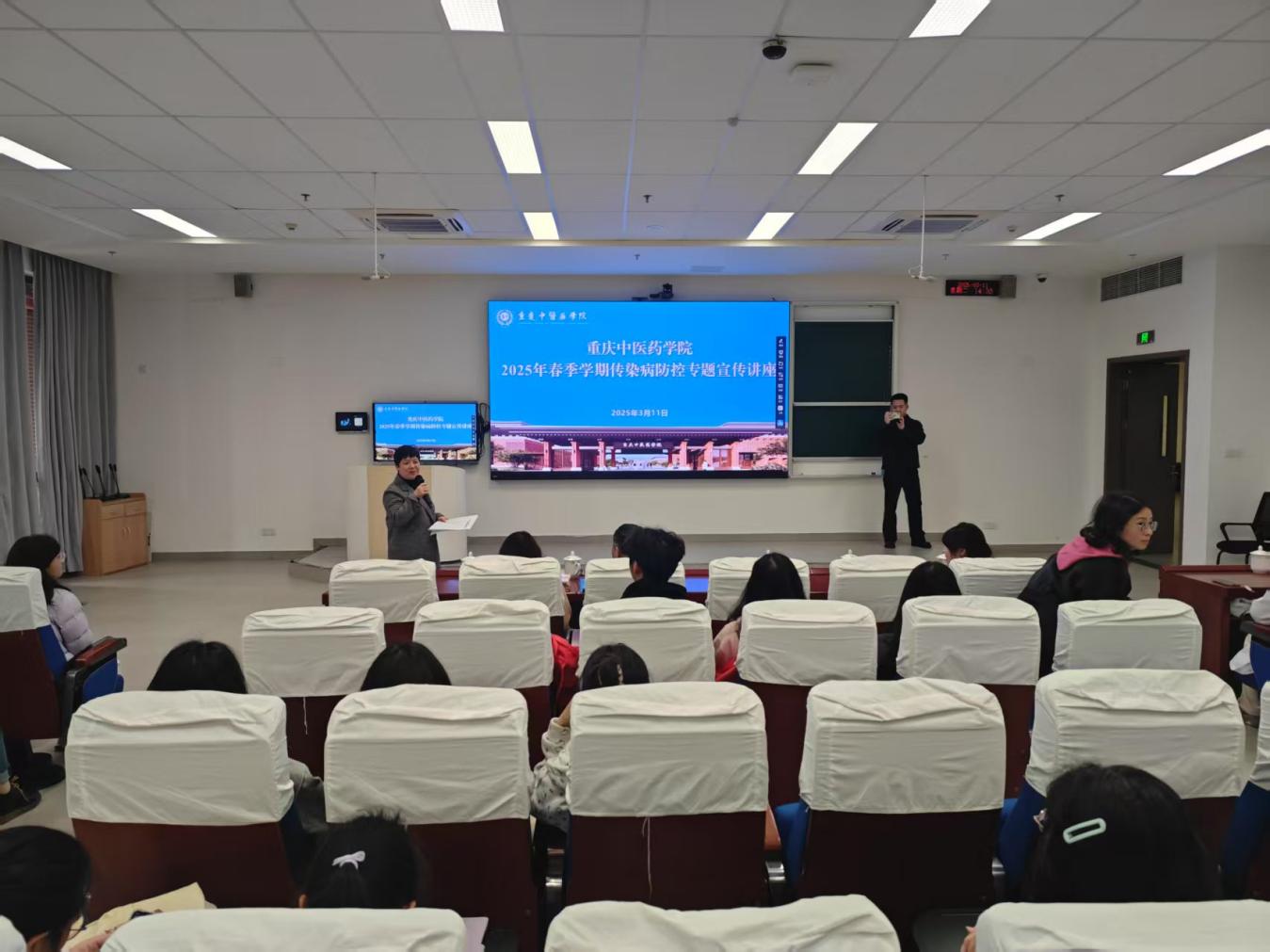 为进一步加强校园传染病防控工作,提升师生健康防护意识,3月11日,米兰官网后勤保卫处联合学生社团中医药健康管理社共同举办了学院2025年春季学期传染病防控专题讲座,讲座内容丰富,吸引了150余名教师和学生现场听讲。