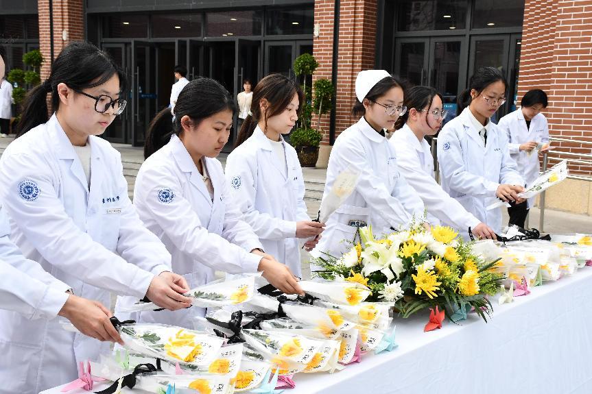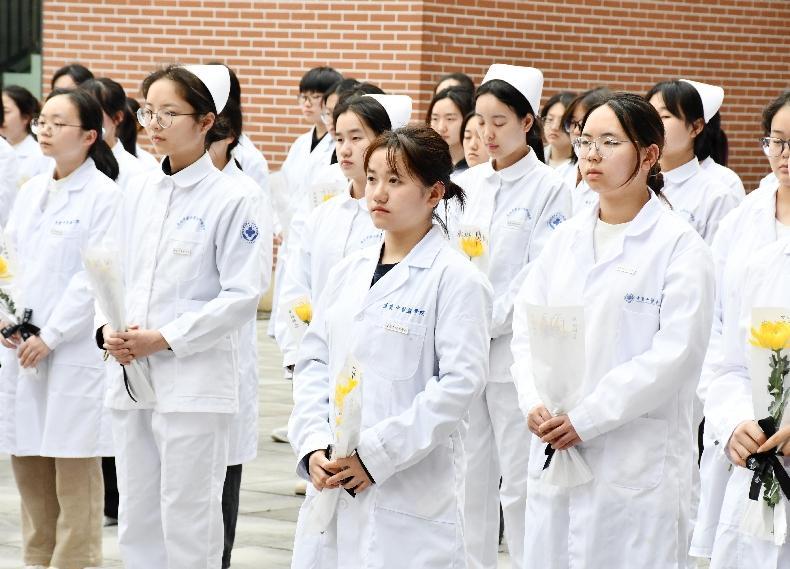 在纪念仪式现场,100余名师生代表神色凝重、表情肃穆,宣读医学生誓词,为捐献者们集体默哀,并敬献鲜花,致敬在医学生成长之路上默默奉献的“无言良师”,更表达了“重中医”全体师生誓愿传承岐黄薪火,为伟大而崇高的中医药事业奋斗终生的理想。