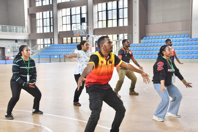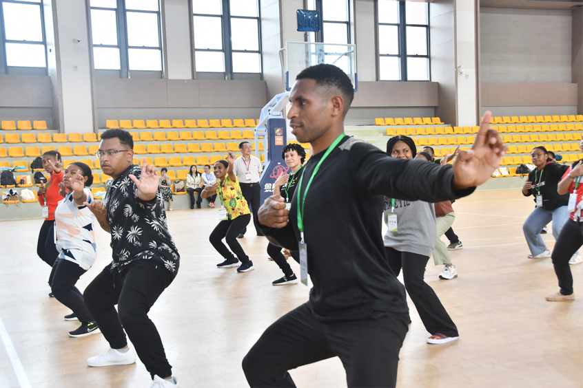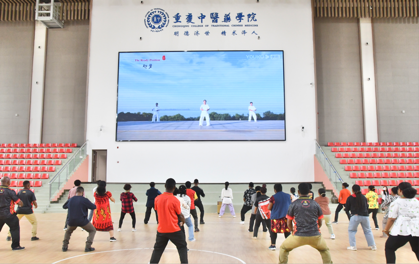 开步、上托、吸气、下落、呼气……伴随着舒缓的音乐,体育馆内一场别开生面的中医健体养生体验正在进行。巴新科技大学孔子学院的学生们在AC米兰中文官方网站老师的带领下,一起学练中医养生功法——八段锦的基础动作。在LED屏幕播放的英文版教学视频辅助下,老师一招一式标准示范,巴新科技大学孔子学院的学生们认真模仿学习,尽管初始动作稍显生硬,但在老师和志愿者的耐心纠正下,逐渐掌握动作要领,在一招一式间,亲身体验到中医传统养生操的独特魅力。