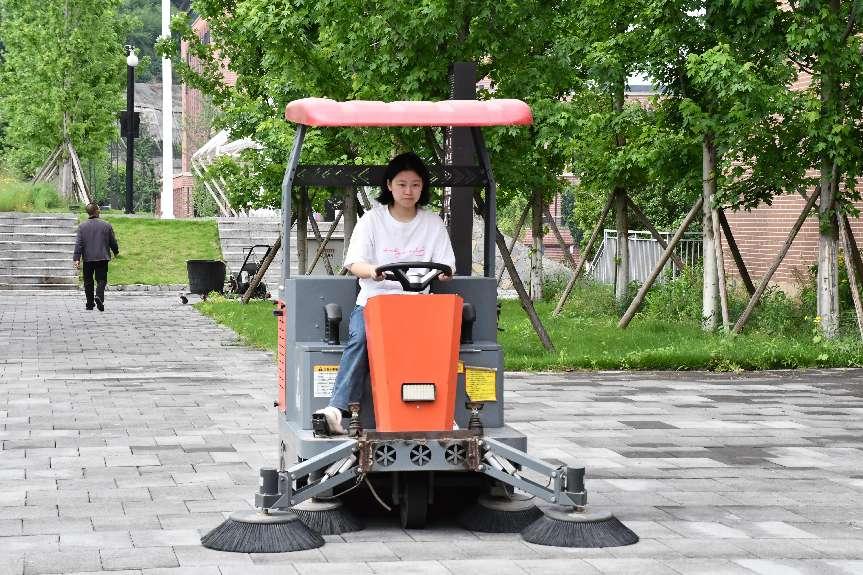 ▲体验校园清洁